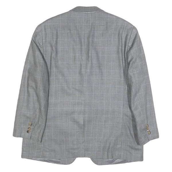 LAUREN RALPH LAUREN Mens Grey Silk Blend Button Jacket L Woven Checked Pattern