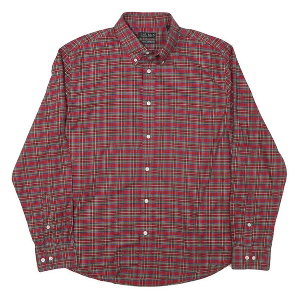 LAUREN RALPH LAUREN Mens Red Green Check Shirt L Classic Cotton Blend Button