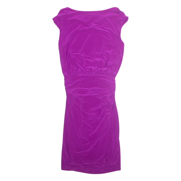 LAUREN RALPH LAUREN Stretch Womens Bodycon Dress Purple Short Sleeve Midi UK 12