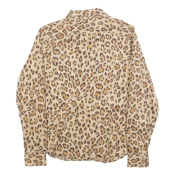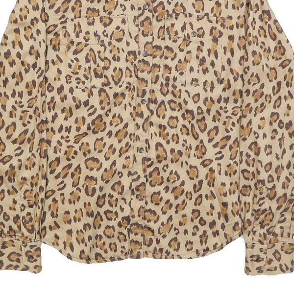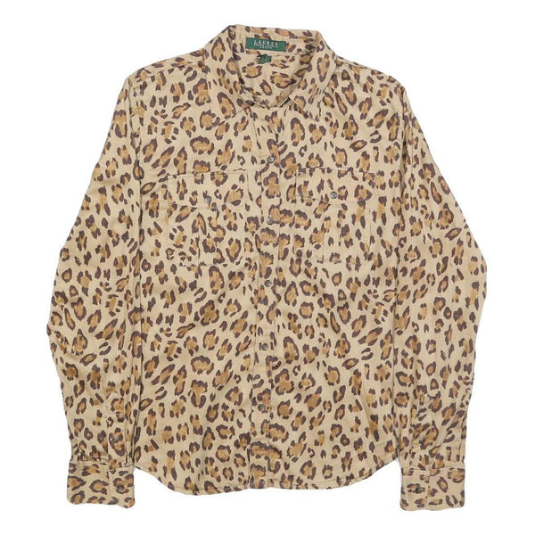 LAUREN RALPH LAUREN Womens Beige & Brown Leopard Print Shirt M Stylish Cotton