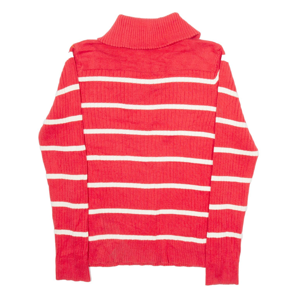 LAUREN RALPH LAUREN Womens Patterned Jumper Red Striped V-Neck Tight Knit L