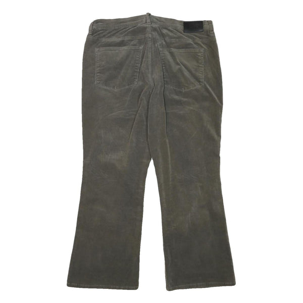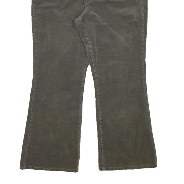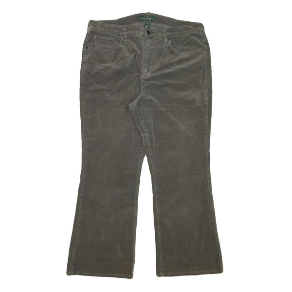 These womens trousers from LAUREN RALPH LAUREN feature a subtle olive tone with hints of brown, giving them a versatile, earthy appearance. The design is plain with no visible patterns or logos on the fabric except for the branded label on the back waist. They are made from a soft cotton blend fabric with a slightly worn, comfortable feel that maintains a structured silhouette.