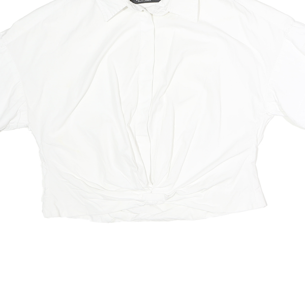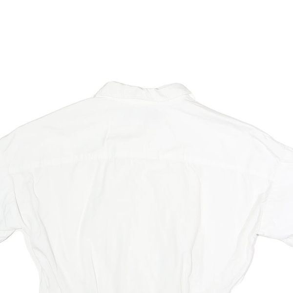 This LAUREN RALPH LAUREN womens shirt is crafted from soft white cotton, offering a comfortable and breathable feel. The shirt features a classic collar and short sleeves, combined with a unique knot detail at the front hem that adds a stylish twist to the traditional shirt design.