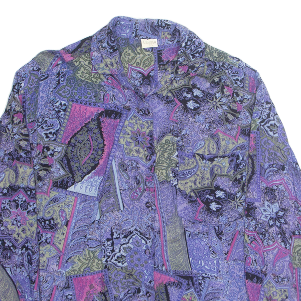 LEADER Womens Printed Blouse Purple Collared Long Sleeve Floral M