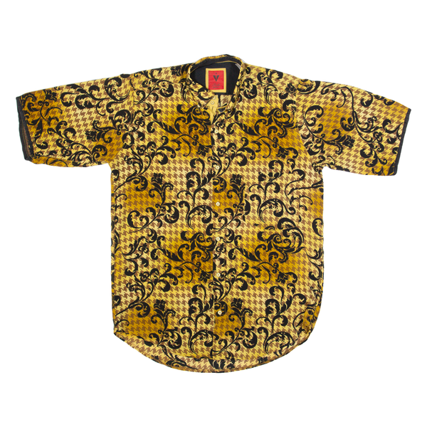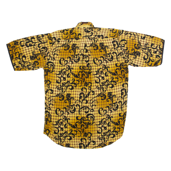 LECHE Mens Shirt Yellow Crazy Pattern S