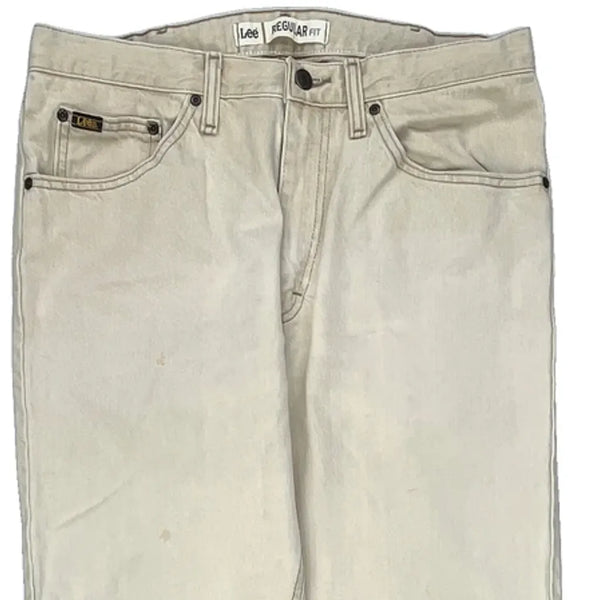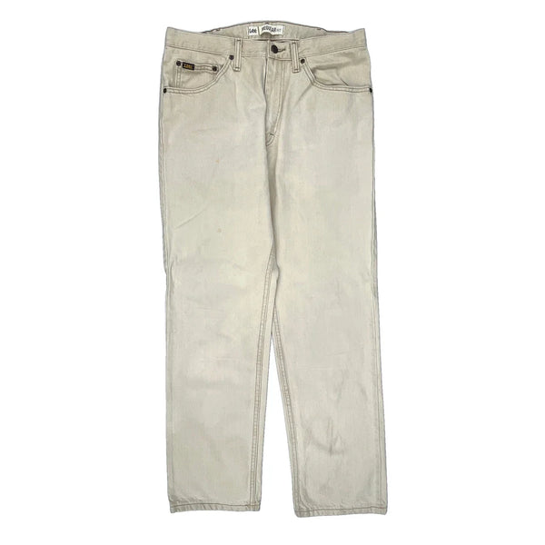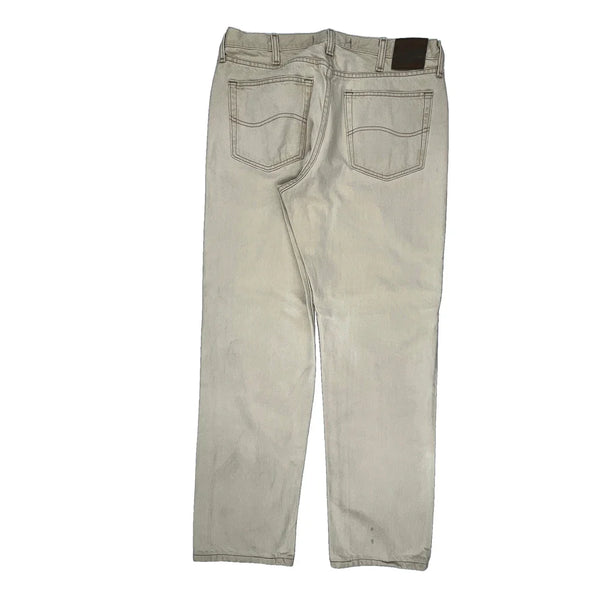 Lee Jeans, fit a 34″ Waist and 30″ inseam.