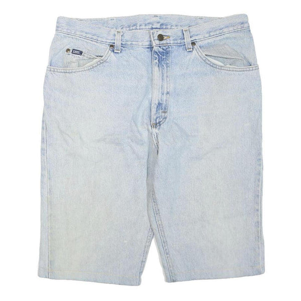 These LEE Mens shorts feature a light blue denim wash with a classic casual look. The shorts include a traditional five-pocket design, branded LEE detailing on the small pocket, and a leather patch with the LEE logo on the back waistband. The denim shows some slight wear consistent with pre-loved use but retains its structure and style.