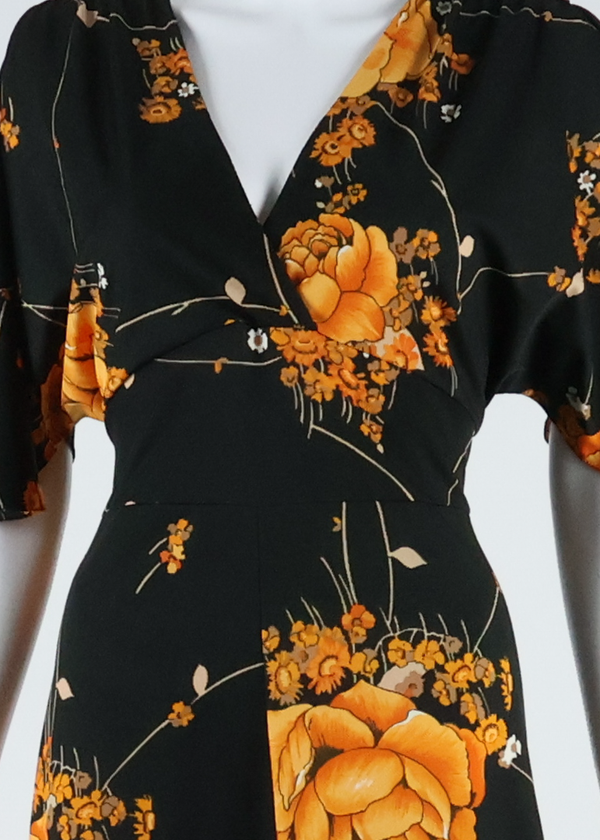 LES'S Belted Womens A-Line Dress Black Floral Long XS