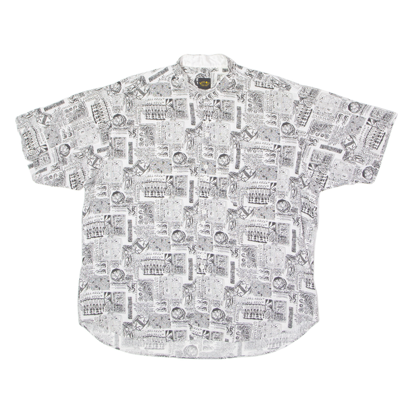 LET'S GO Mens Shirt White 90s Crazy Pattern XL
