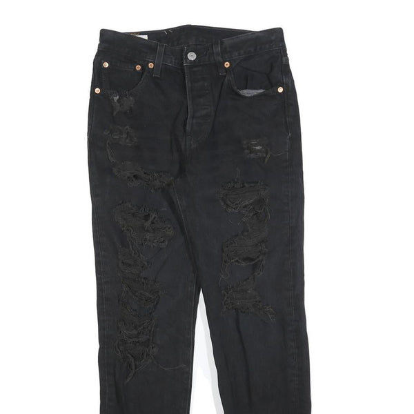 LEVI'S 501 BIG E Womens Jeans Black Regular Skinny Denim Raw W25 L26 Distressed