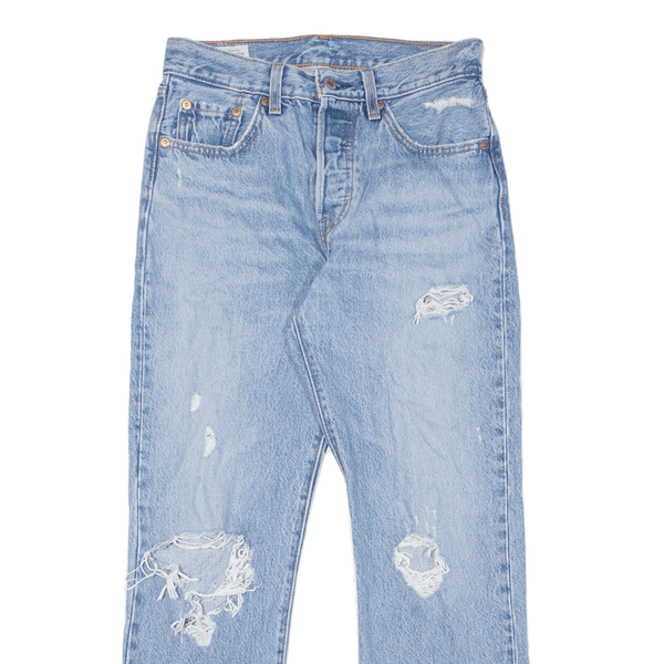 LEVI'S 501 Jeans Premium Distressed Womens Blue Straight Stone Wash W24 L26