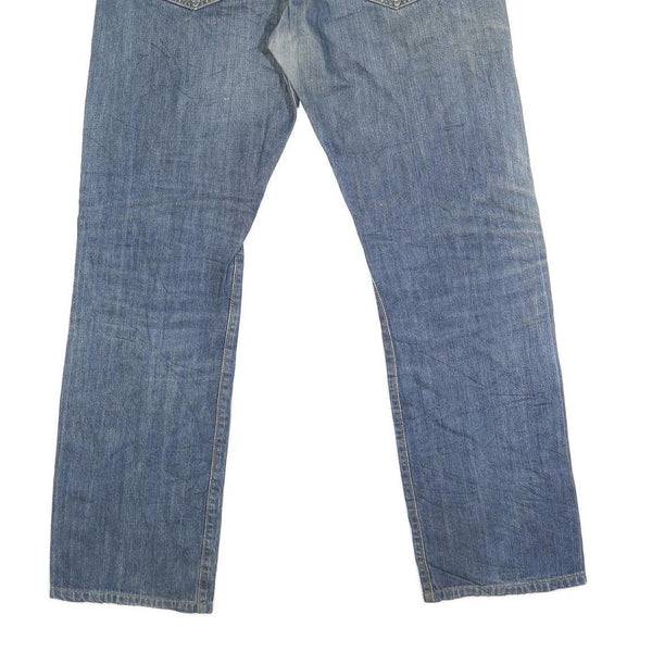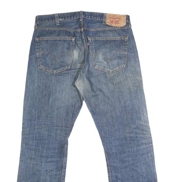 Designed with a regular fit and straight leg style, the jeans provide a timeless silhouette. The zip closure, five-pocket design, and distinctive Levi's leather patch on the waistband confirm their authenticity. Slight wear marks add character but do not affect the overall good condition.