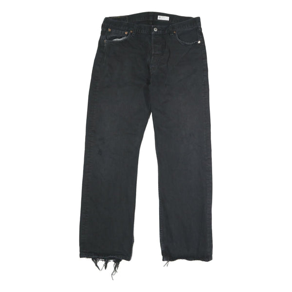 LEVI'S 501 Mens Jeans Black Regular Straight Denim W35 L31 Distressed Hem