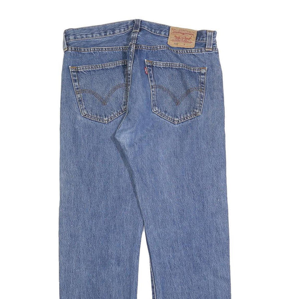 These Levi's 501 Mens Jeans feature a classic blue denim colour with a medium wash that shows natural fading and subtle distressing typical of pre-loved jeans. The front displays the distinctive button fly, a signature feature of the 501 model, with copper rivet detailing on the pockets. The rear showcases the iconic Levi's arcuate stitching on the two back pockets along with the branded leather patch on the waistband, affirming authenticity.