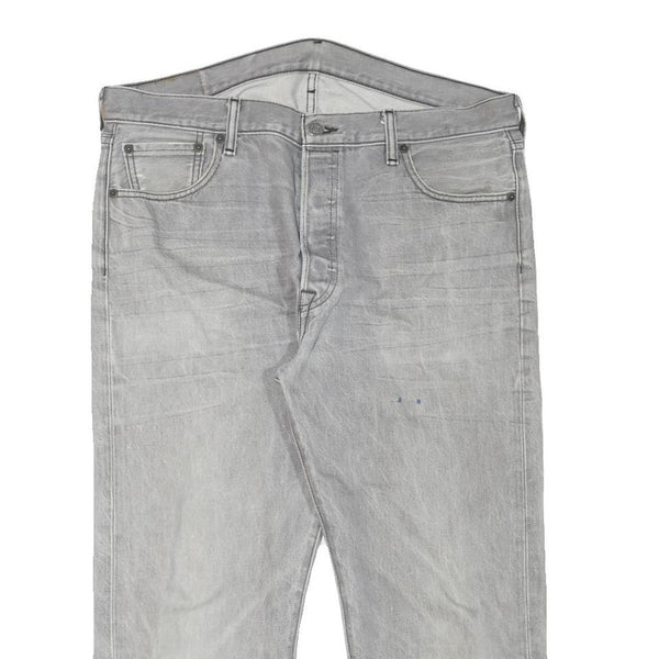 LEVI'S 501 Mens Jeans Grey Regular Straight Denim Light W36 L23 Button Closure