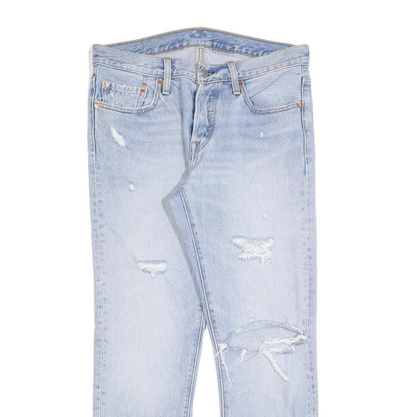 LEVI'S 501 T Womens Jeans Blue Regular Straight Denim Light W32 L28 Distressed