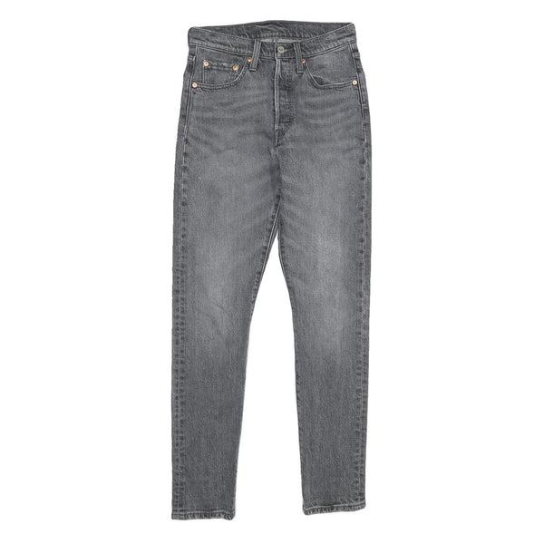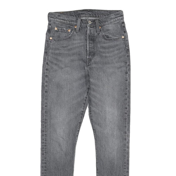 These LEVI'S 501S womens jeans are crafted from a cotton blend denim in a medium grey wash. They feature the classic five-pocket design including the signature arcuate stitching on the back pockets and the iconic red tab of Levi's branding on the right rear pocket.