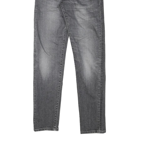 These LEVI'S 512 Mens Jeans come in a sleek grey medium wash with subtle fading for a worn-in look. They feature the classic five-pocket style with a zip closure and slim skinny fit that tapers through the leg.