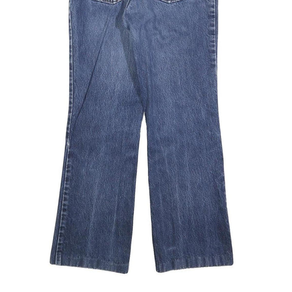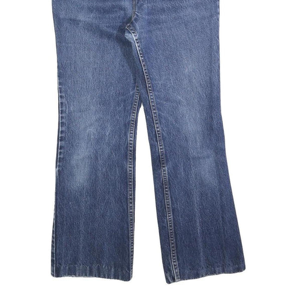 These LEVI'S 517 Bootcut jeans are a classic vintage style in a medium blue wash with subtle fading and wear typical of pre-loved denim. The regular fit offers comfortable wearing with a flattering bootcut leg that gently flares out from the knee.