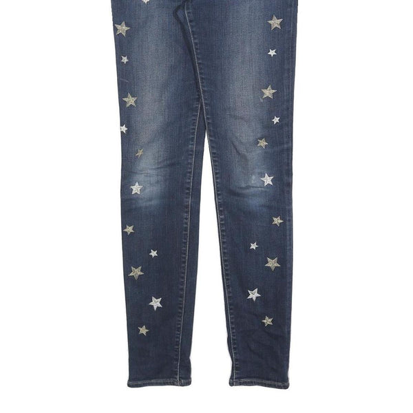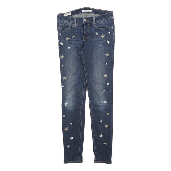 Levi's 711 womens jeans blue slim skinny denim medium w27 l30 star embroidered