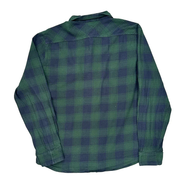 Green And Blue Checked Flannel Shirt With Two Chest Pockets.