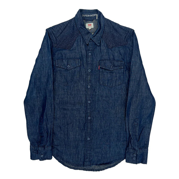 Western-Style Denim Shirt With Textured Shoulder Panels