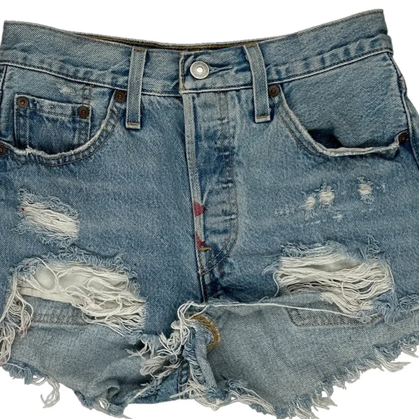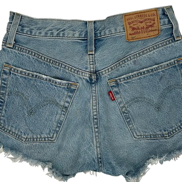 Levis Denim Shorts, fit a UK size 6 with a 25″ Waist.