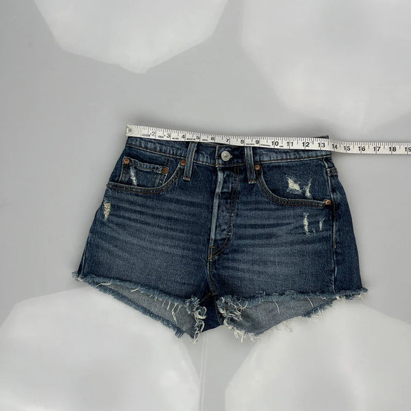 Levis Denim Shorts, fit a UK size 8 with a 27″ Waist.