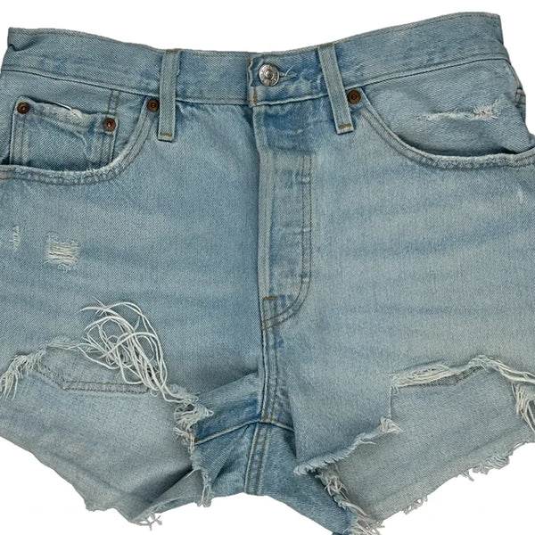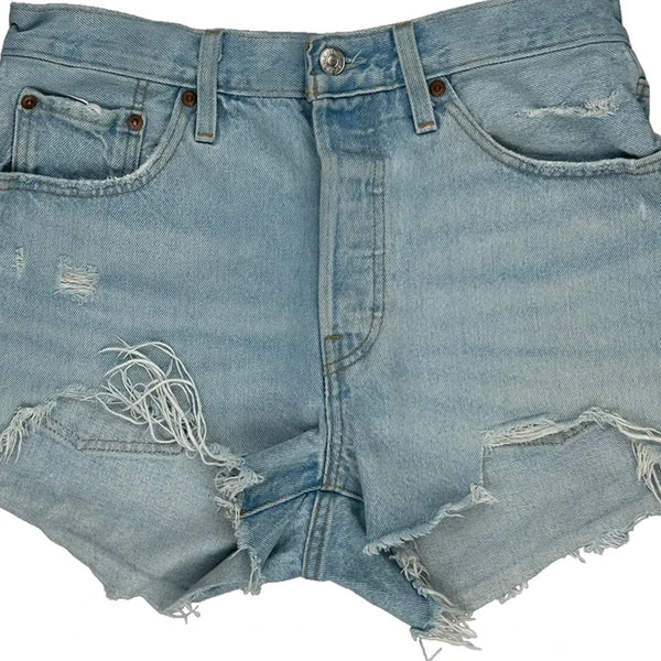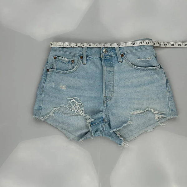 Levis Denim Shorts, fit a UK size 8 with a 28″ Waist.
