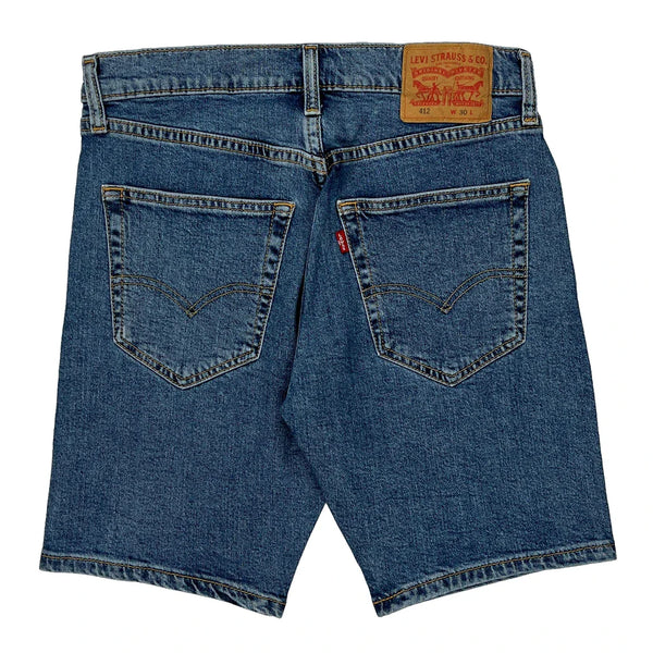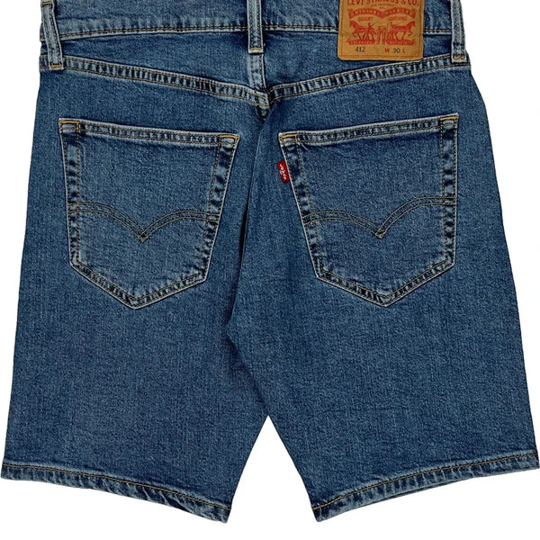 Levis Denim Shorts, fit a 30″ Waist and 9″ inseam.