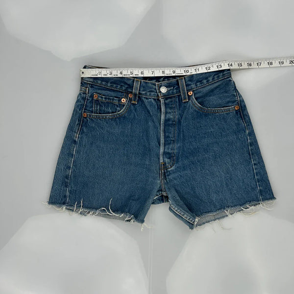 Levis Denim Shorts, fit a UK size 10 with a 30″ Waist.