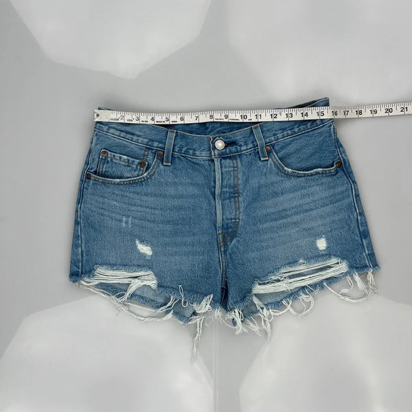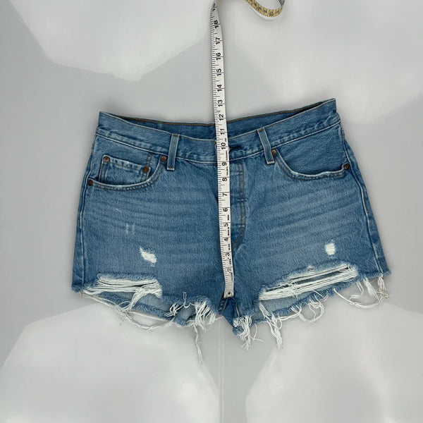 Levis Denim Shorts, fit a UK size 12 with a 31″ Waist.