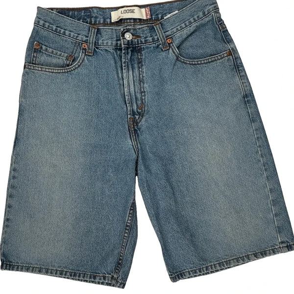 Levis Denim Shorts, fit a 32″ Waist and 11″ inseam.
