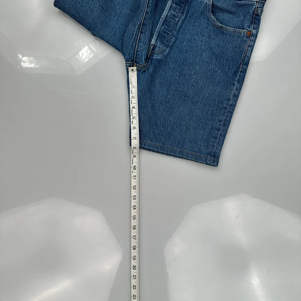 Levis Denim Shorts, fit a 32″ Waist and 9″ inseam.