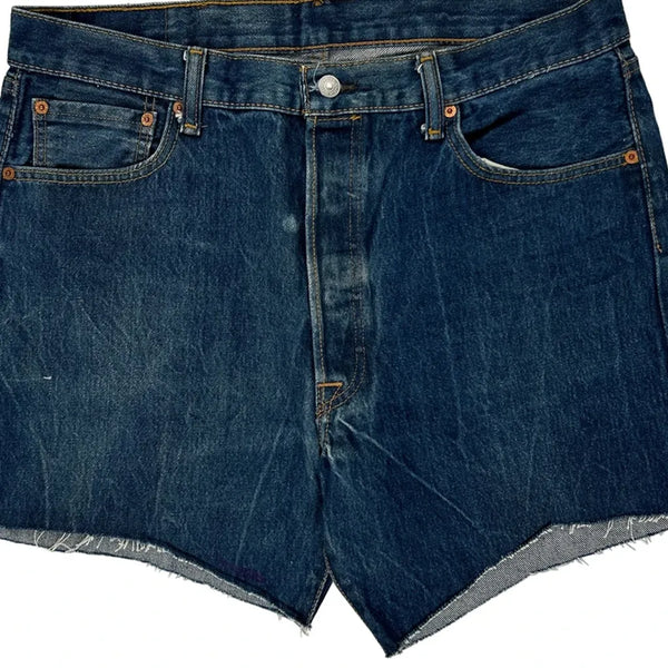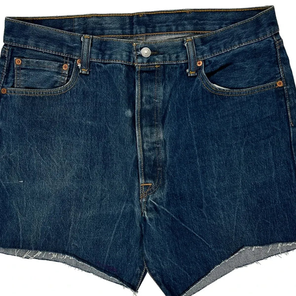 Levis Denim Shorts, fit a 34″ Waist and 9″ inseam.