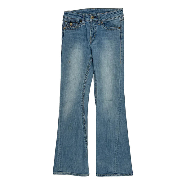 Faded Light Wash Jeans With Flared Bottoms