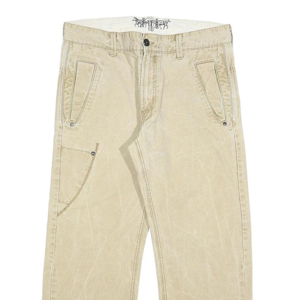 LEVI'S Mens Beige Cotton Blend Regular Straight Trousers W34 L28 Casual Zip
