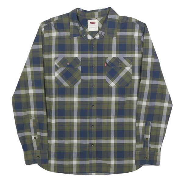 LEVI'S Mens Blue & Green Check Shirt M Cotton Blend Casual Long Sleeve Button