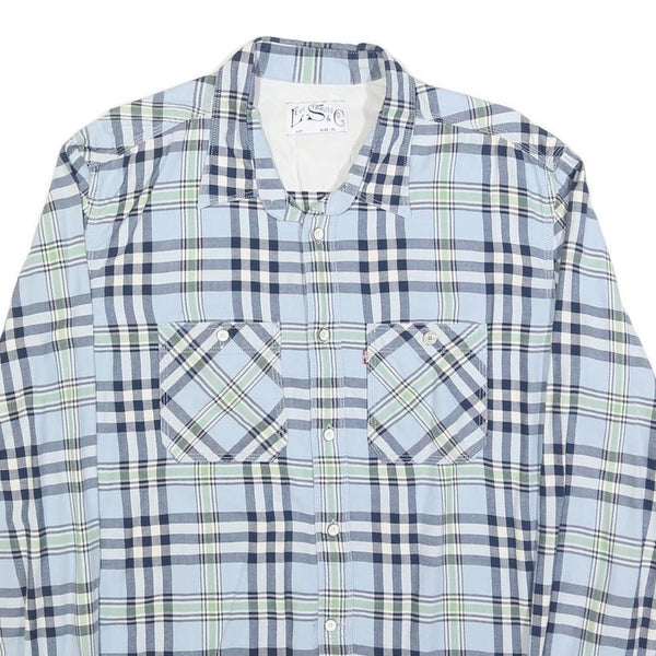 LEVI'S Mens Blue & Green Check Shirt XL Classic Cotton Blend Long Sleeve Button