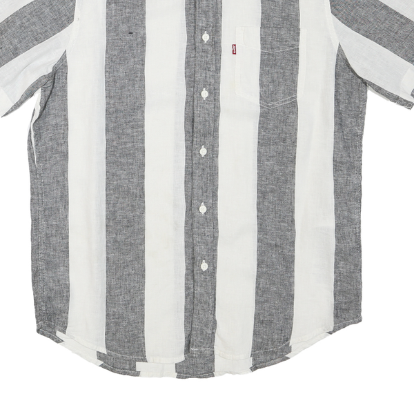 LEVI'S Mens Grey & White Striped Shirt M Cotton Blend Casual Short Sleeve Summer