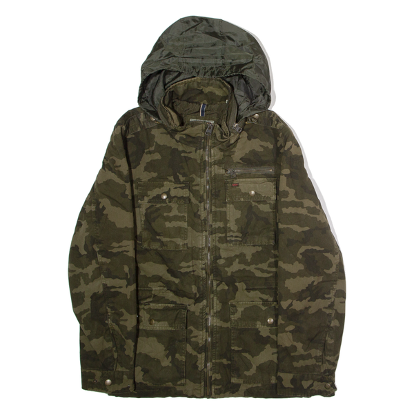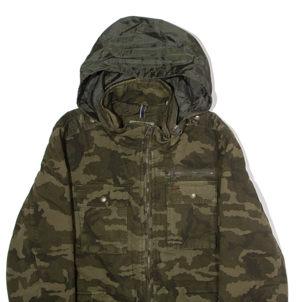 LEVI'S Mens Parka Coat Green Canvas Hooded Camouflage M