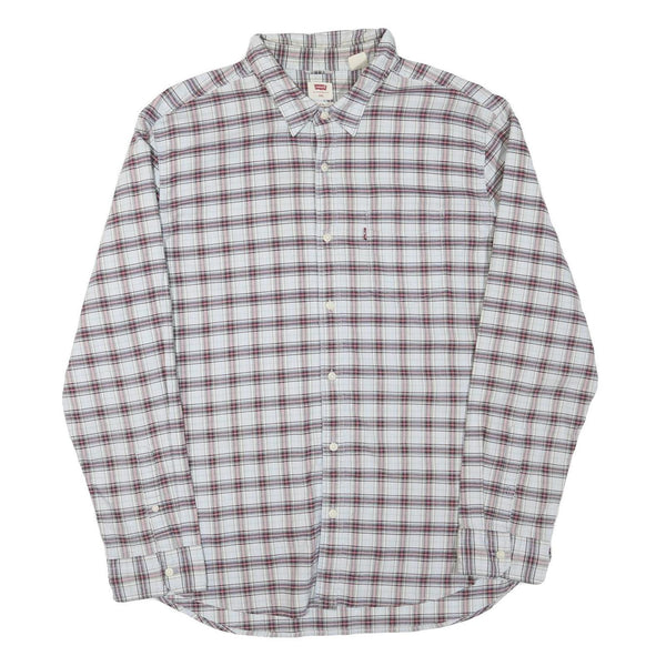 LEVI'S Mens White & Maroon Checked Shirt 2XL Cotton Blend Casual Long Sleeve