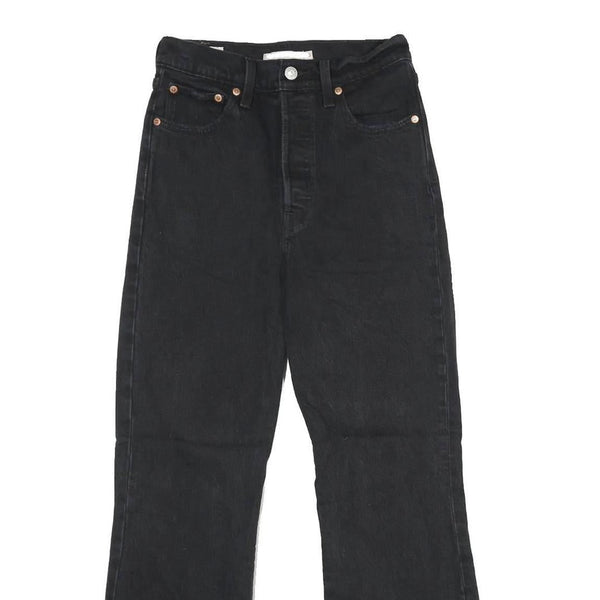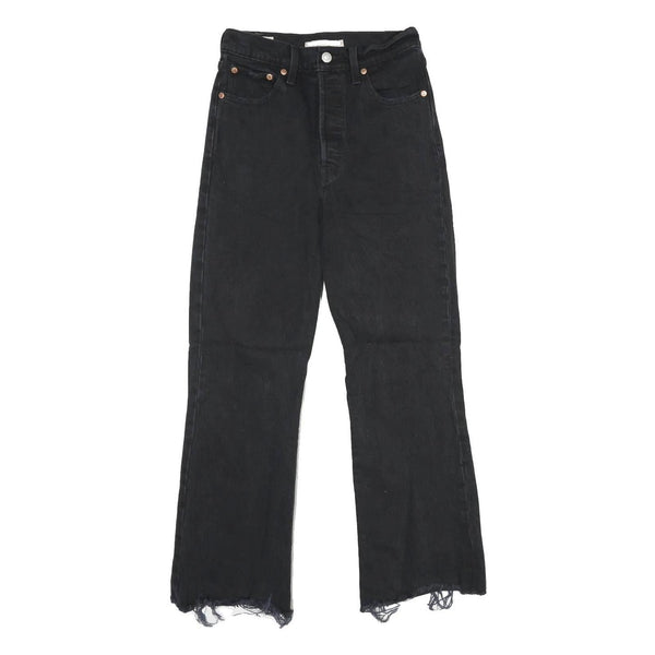Levi's ribcage crop flare big e womens black regular flared denim w25 l26 raw