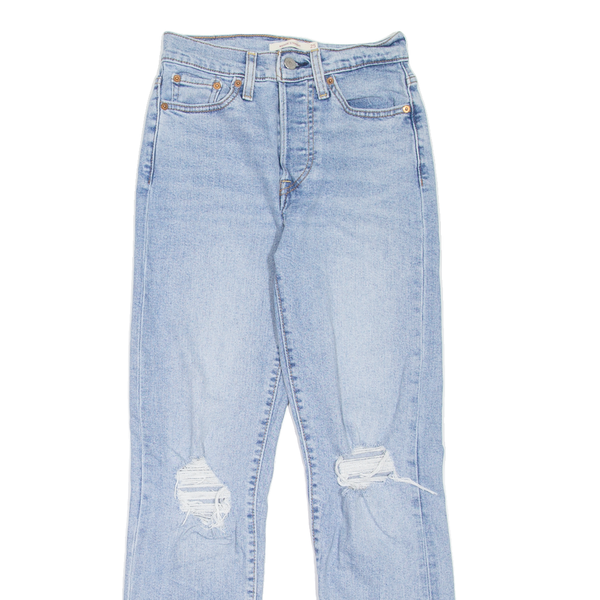 LEVI'S Wedgie Distressed Womens Jeans Blue Regular Straight Stone Wash W25 L28