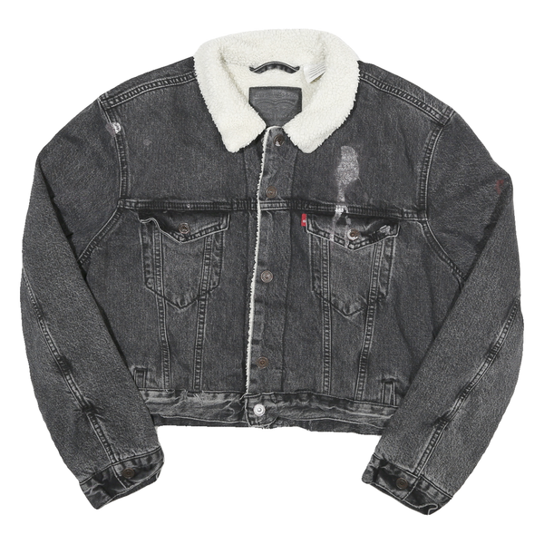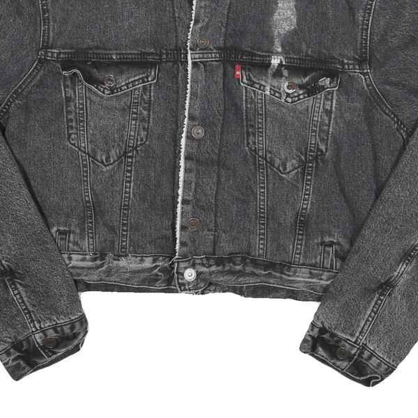 LEVI'S Womens Black Cotton Blend Denim Sherpa Lined Button Jacket XL