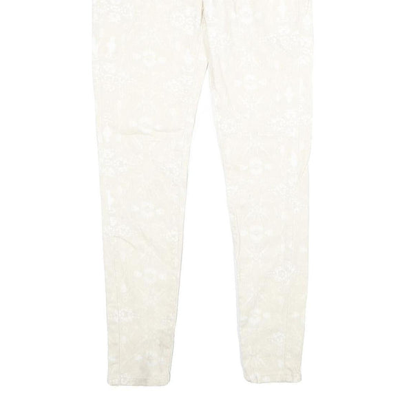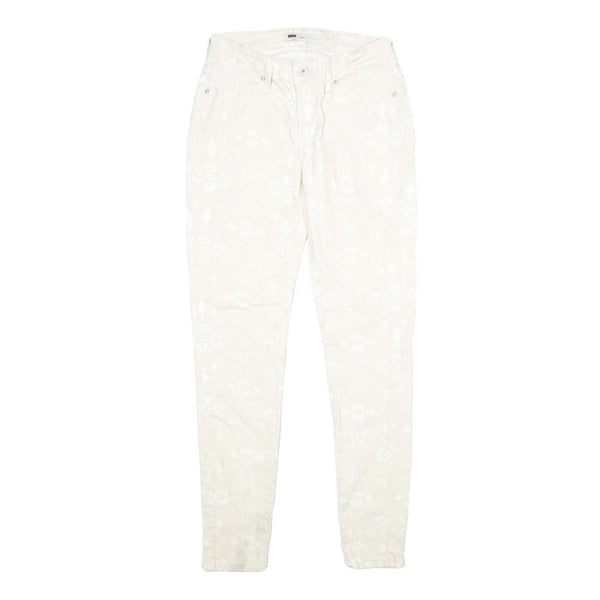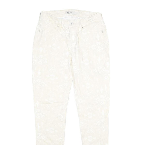 These LEVI'S womens legging jeans feature a subtle cream colour with an intricate tonal textured pattern to add unique style. They are designed in a slim fit that hugs the legs closely, offering a sleek and modern silhouette. Functional five-pocket styling includes two classic front pockets and two back pockets, complemented by a zip closure and button fastening at the waist.