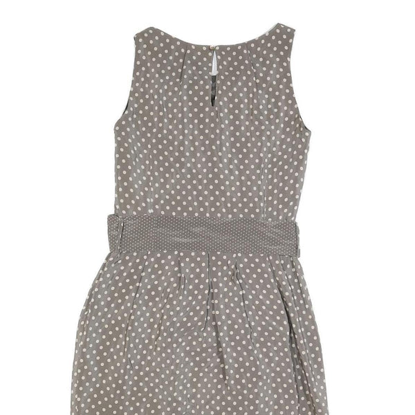 Home LIL Womens Grey & White Silk Polka Dot Sleeveless Day Dress Size S Belted