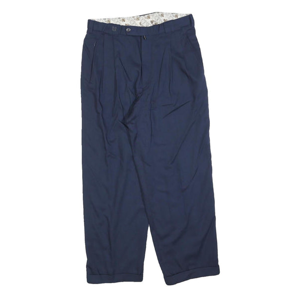 LINEA DUE Womens Wool Blend Navy Regular Fit Straight Leg Trousers W30 L30 Smart