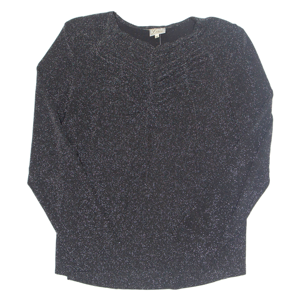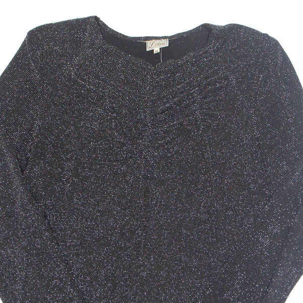 LINEA Glitter Womens Blouse Black Long Sleeve Nylon L