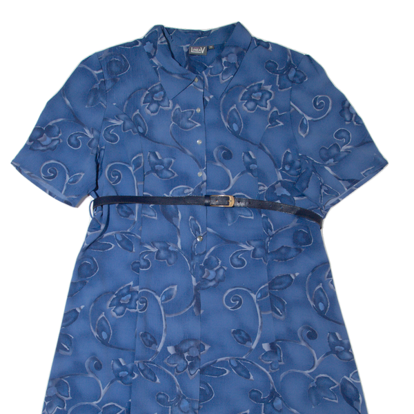 LINEA V Womens A-Line Dress Blue Floral Short Sleeve Midi XL